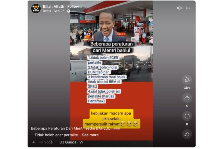 Dalam unggahan tersebut dinarasikan beberapa kebijakan, yaitu pengendara dilarang membeli bensin eceran Pertalite, kendaraan tidak boleh mengisi BBM setiap hari, kendaraan yang pajaknya mati tidak bisa mengisi BBM di SPBU Pertamina, serta ojek online (ojol) tidak boleh menggunakan Pertalite dan wajib memakai Pertamax.