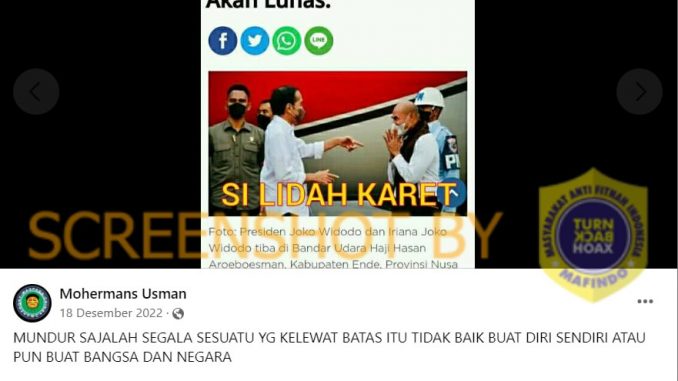 Akun Facebook Mohermans Usman pada 18 Desember 2022 memposting sebuah tangkapan layar artikel berjudul “Jokowi Berjanji : 1 Periode Lagi Seluruh Hutang Negara Indonesia Akan Lunas”.