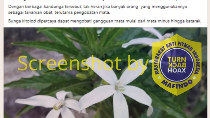 (GFD-2023-12072) [SALAH] Bunga Kitolod dapat Mengobati Gangguan Mata Mulai dari Mata Minus hingga Katarak