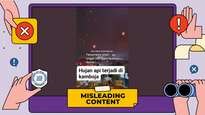 Unggahan berisi klaim “Hujan Api Terjadi di Kamboja” merupakan konten yang menyesatkan (misleading content).