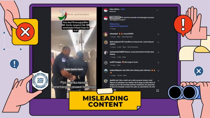 Unggahan berisi klaim “pilot Amerika menolak terbangkan pesawat bersenjata ke Israel” itu merupakan konten yang menyesatkan (misleading content).