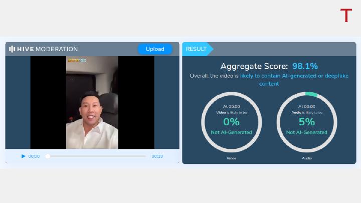 Analisis menggunakan Hive Moderation juga menunjukkan kemungkinan 98,1 persen video tersebut dibuat menggunakan AI.
