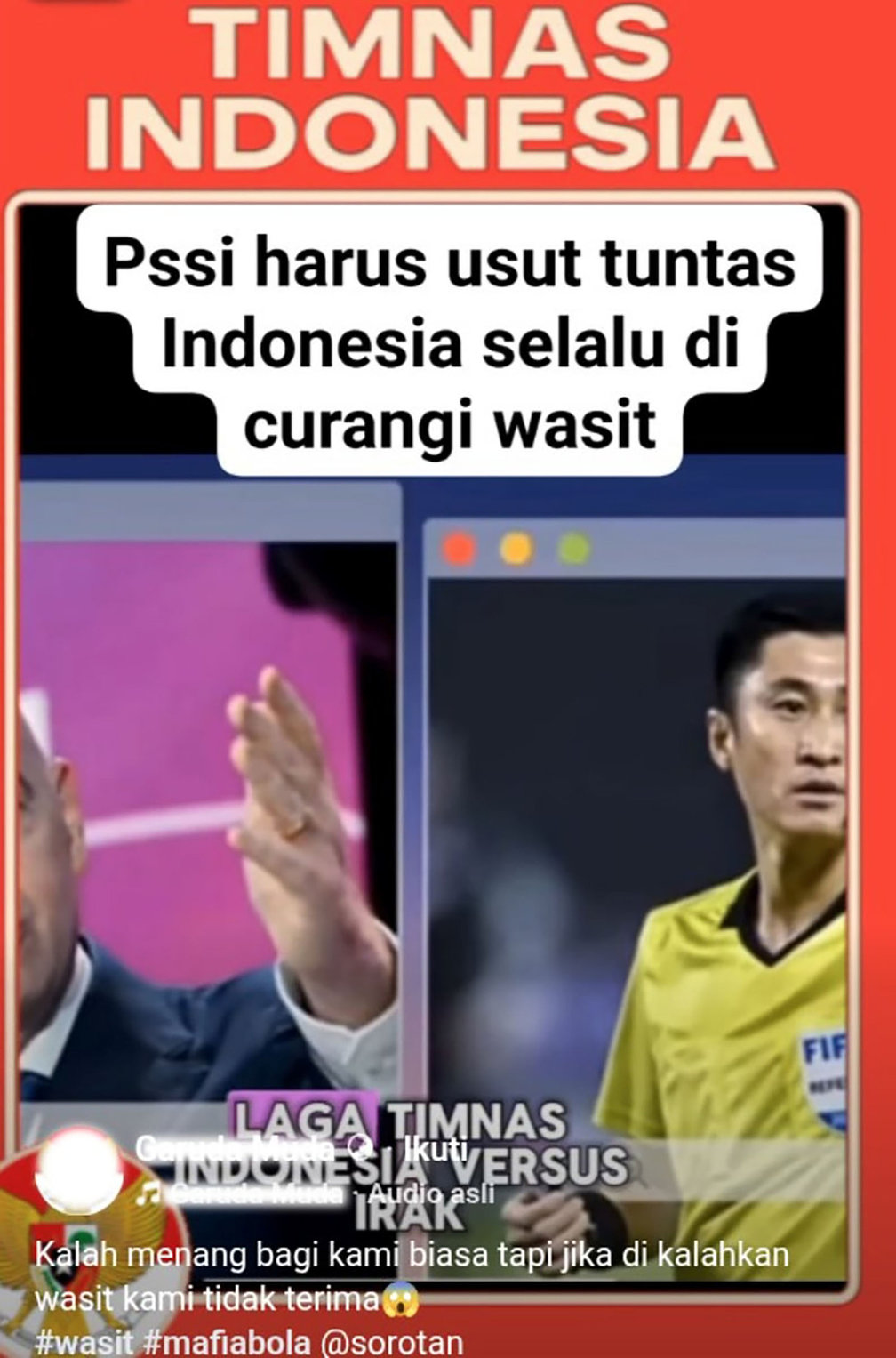 Narasi soal kecurangan wasit dan sogok-menyogok juga kerap tersebar di media sosial, jika Timnas Indonesia mengalami kekalahan.