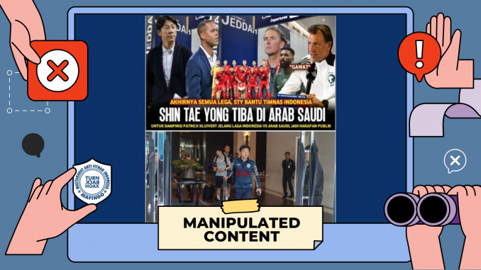 Unggahan berisi klaim “Shin Tae Young ke Arab Saudi untuk dampingi Kluivert” merupakan konten yang dimanipulasi (manipulated content).