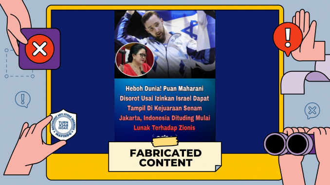 Unggahan berisi klaim “Puan Maharani izinkan Israel tampil di Kejuaraan Senam Artistik 2025 di Jakarta” merupakan konten palsu (fabricated content).