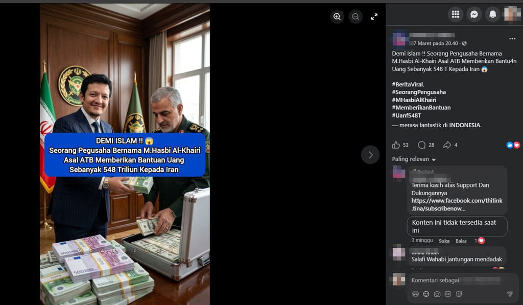 (GFD-2026-33725) Salah, Pengusaha Indonesia Beri Iran Bantuan Uang Rp548 Triliun