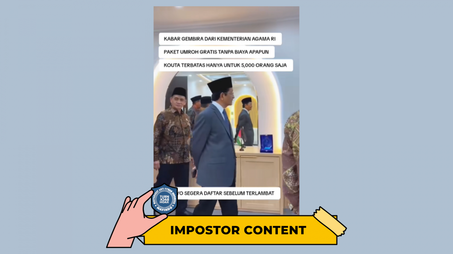Unggahan video berisi narasi “paket umroh gratis dari Kementerian Agama RI” merupakan konten tiruan (impostor content).
