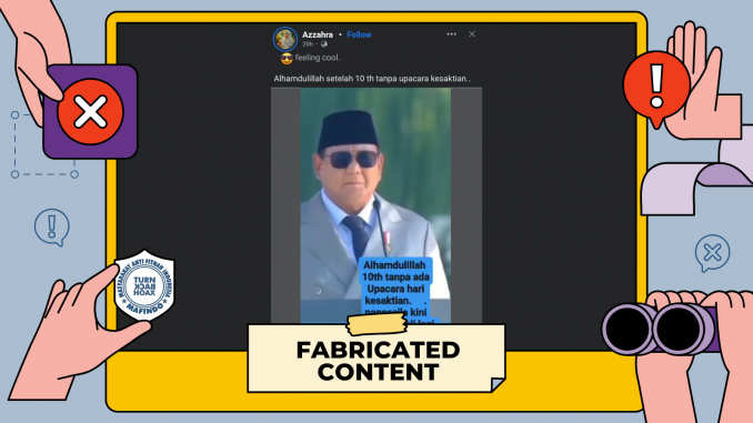 Unggahan video berisi klaim “Presiden Prabowo marah besar atas kebijakan pelat nomor kendaraan yang dilakukan Pemprov Sumut” merupakan konten palsu (fabricated content).