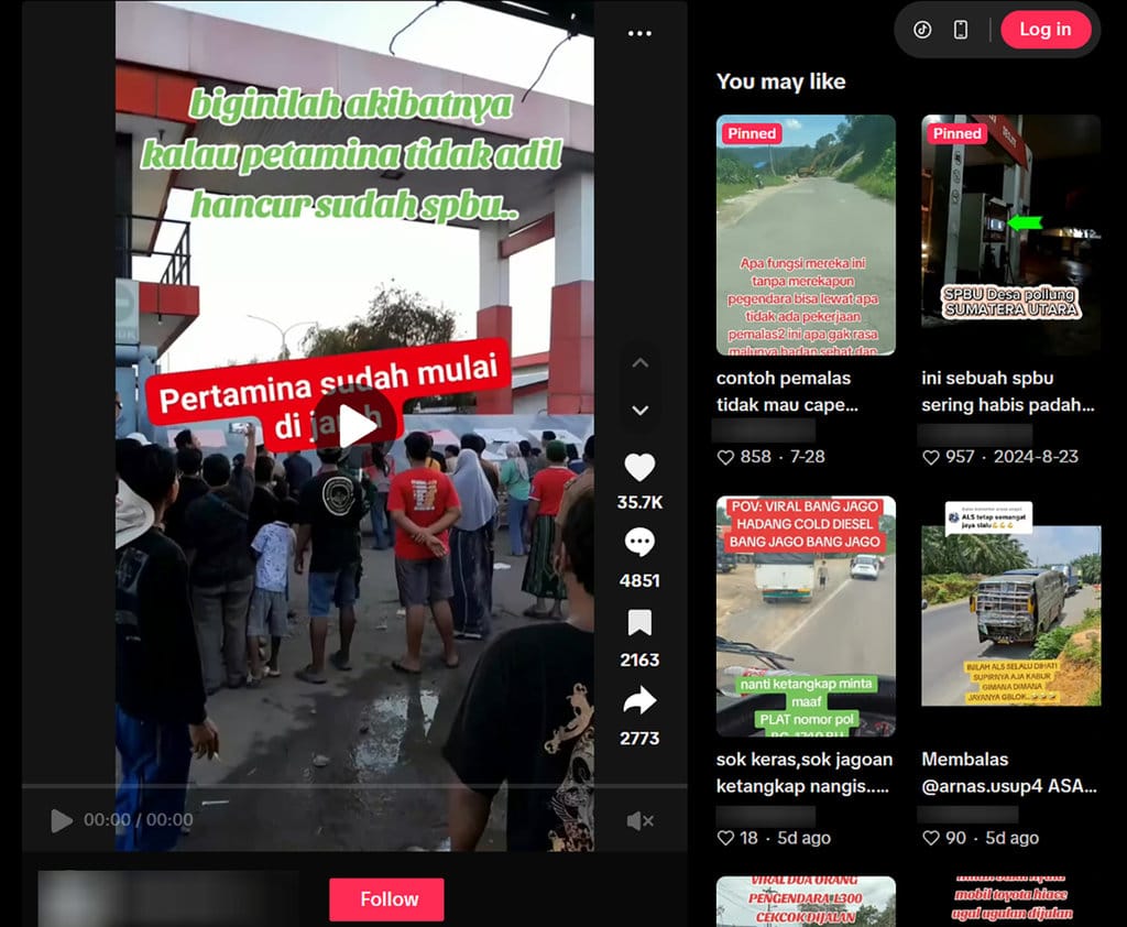 Hingga artikel ini ditulis pada Sabtu (27/9/2025), unggahan tersebut sudah mendapatkan lebih dari 35 ribu tanda suka, 4.821 komentar dan 2.756 kali dibagikan. Klaim serupa juga ditemukan di TikTok diunggah oleh akun โlukitariโ, โmangiring.gultom1โ, โcak.sutadji0โ, โputune.mbah.lamiโ, โbulangbirinkโ, โtukang_sayur1โ, โlargebooksightโ, โandra.parfumโ, โfaruq.incu.elangโ, โ juga pada platfrom YouTube oleh akun โAgusguGunawanโ pada Facebook oleh akun โJajang Miftah Paridโ dan โDian Herdianโ. Semua unggahan tersebut mengklaim terjadinya penjarahan di SPBU.