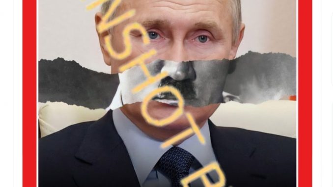 (GFD-2022-9414) [SALAH] Cover Majalah “Time” Bergambar Vladimir Putin dan Kumis Hitler