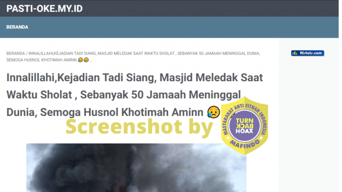 Sebuah artikel dengan judul “Innalillahi,Kejadian Tadi Siang, Masjid Meledak Saat Waktu Sholat, Sebanyak 50 Jamaah Meninggal Dunia, Semoga Husnol Khotimah Aminn 😥😥…” yang diposting oleh pasti-oke[dot]my[dot]id menjelaskan bahwa telah terjadi kebakaran masjid di Bangladesh dengan jumlah korban 50 orang meninggal. Dalam artikel juga dijelaskan bahwa korban luka dilarikan di Sheikh Hasina National Institute