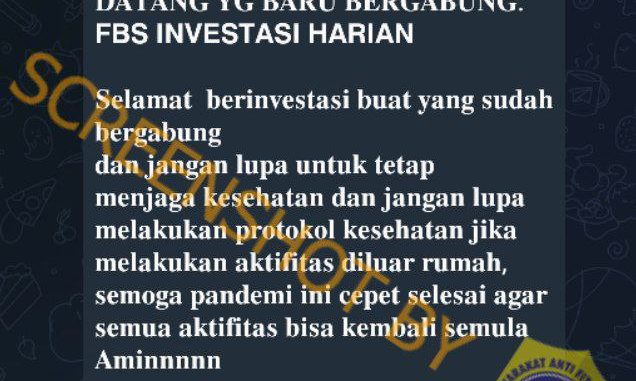 Beredar akun Telegram FBS dengan nama FBS INVESTASI HARIAN. Pada akun terserbut memiliki sebanyak 1.508 anggota yang tergabung dan menawarkan pengelolaan investasi dengan narasi sebagai berikut: