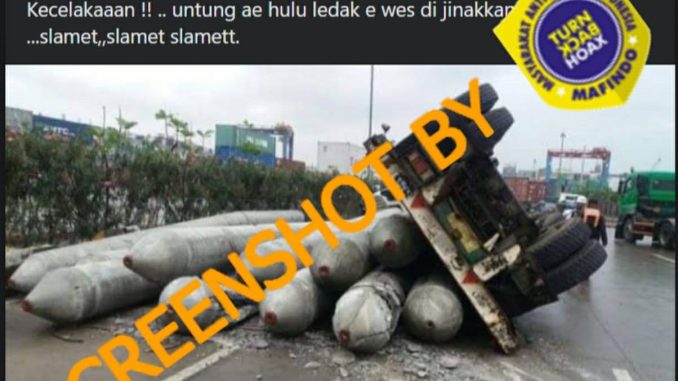 Berdasarkan hasil penelusuran, foto tersebut bukan merupakan foto kecelakaan truk pengangkut rudal, melainkan merupakan foto kecelakaan truk pengangkut paku bumi di Pelabuhan Tanjung Priok, Jakarta. Foto yang sama dapat ditemukan dalam artikel berjudul “Paku Bumi Berserakan di Priok” yang dimuat oleh detikNews pada 30 Januari 2018 lalu.