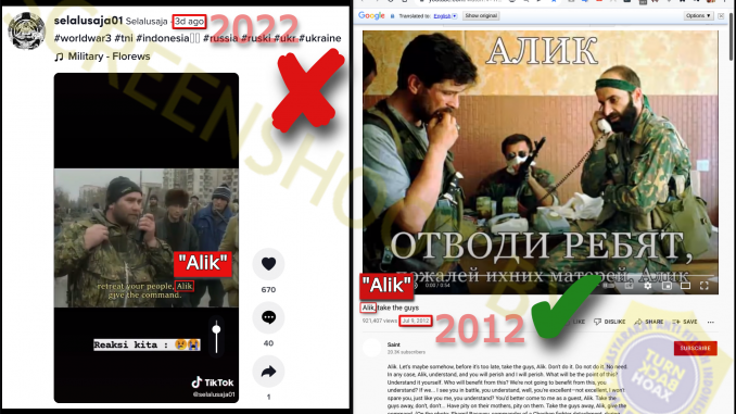 TIDAK TERKAIT dengan kondisi Ukraina saat ini (2022). FAKTA: video yang dibagikan berisi obrolan radio antara pemimpin Chechnya dengan Kolonel Ivan Savin, juga dikenal sebagai “Alik” seperti yang disebutkan dalam obrolan, dari The Battle of Grozny pada tahun 1994.