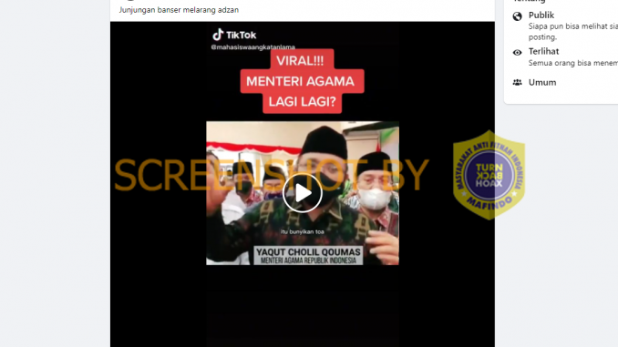 Sampai saat ini Menteri Agama masih Yaqut Cholil Qoumas. Selain itu, foto thumbnail di video itu adalah hasil editan dari foto ketika Presiden Joko Widodo menggenggam tangan Habib Luthfi dan KH Ma’ruf pada saat menghadiri Festival Sholawat Piala Presiden 2018.