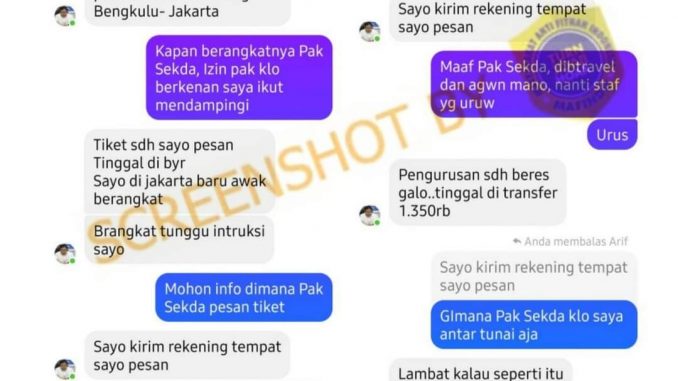 Beredar akun Facebook Sekretaris Daerah Kota Bengkulu Arif Gunadi. Akun tersebut melakukan komunaksi dengan beberapa pejabat dengan modus minta dibayari tiket pesawat. Akun Facebook tersebut juga menggunakan foto profil Arif Gunadi memakai kemeja putih.