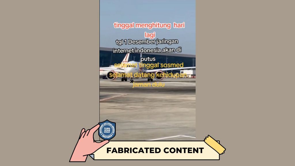 Unggahan berisi klaim “tanggal 1 Desember jaringan internet Indonesia akan diputus” merupakan konten palsu (fabricated content).