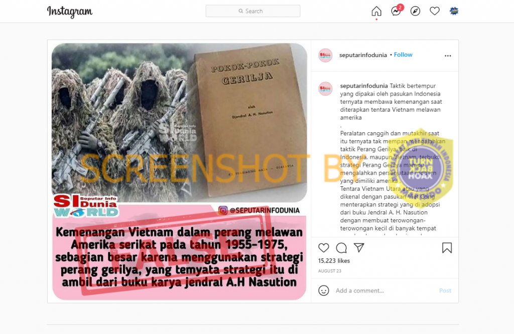(GFD-2021-7523) [SALAH] “Vietnam sebagian besar menggunakan strategi perang gerilya dari buku karya Jenderal A.H Nasution”