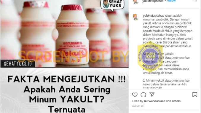 Beredar sebuah narasi melalui akun Instagram yukktetapsehat yang menyebutkan manfaat-manfaat dari Yakult. Narasi dalam unggahan tersebut menyebutkan salah satu manfaat dari meminum Yakult adalah untuk mencegah kanker paru-paru.