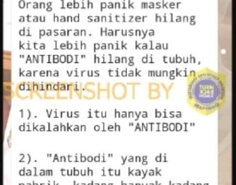 Beredar sebuah pesan berantai melalui WhatsApp yang menyatakan bahwa campuran air kelapa muda, jeruk nipis, garam, dan madu dapat mengobati Covid-19. Pesan tersebut juga menyatakan bahwa satu jam setelah meminum campuran tersebut, virus Corona akan hilang.