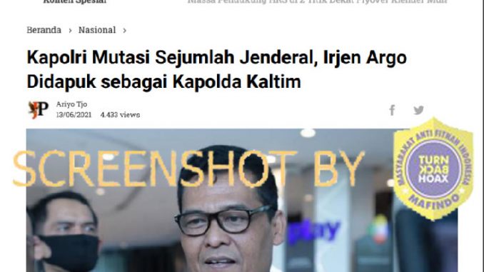(GFD-2021-7136) [SALAH] Kapolri Mutasi Sejumlah Jendral dan Irjen Argo Didapuk sebagai Kapolda Kaltim