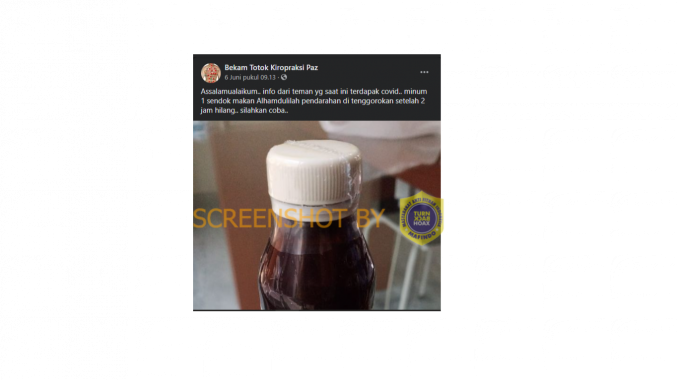 Beredar sebuah narasi yang diunggah oleh akun Facebook Bekam Totok Kiropraksi Paz yang mengatakan bahwa terdapat sebuah obat herbal yang menyembuhkan pendarahan pada tenggorokan orang yang terdampak Covid-19. Unggahan tersebut juga mencantumkan sebuah foto yang menunjukkan sebuah obat, yakni Nigella Oil yang diklaim dapat menghilangkan pendarahan tenggorokan dalam dua jam.