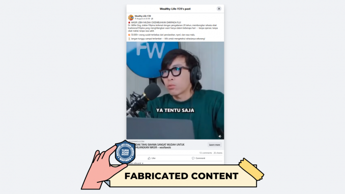 Unggahan berisi klaim “video Dokter Tirta ungkap cara mengatasi wasir dengan air putih dan garam” adalah konten palsu (fabricated content).