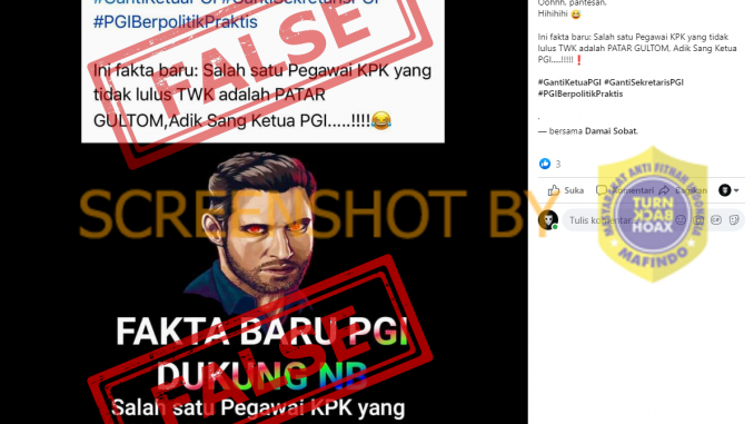 (GFD-2021-7041) [SALAH] “Ini fakta baru: Salah satu Pegawai KPK yang tidak lulus TWK adalah PATAR GULTOM, Adik Sang Ketua PGI”