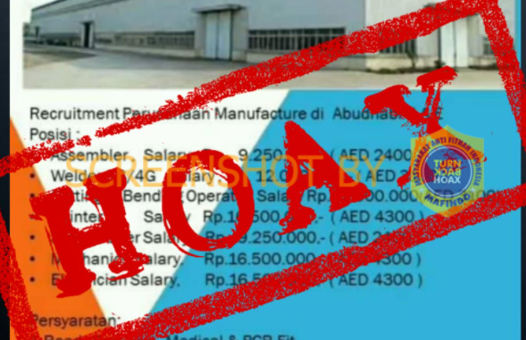 Dari penjelasan di atas dapat disimpulkan bahwa info lowongan pekerjaan Perusahaan Manufacture di Abu Dhabi melalui BLK Cilacap hoaks kategori fabricated content/konten palsu.