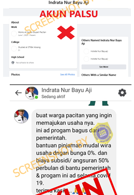 Beredar akun Facebook Bupati Pacitan Indrata Nur Bayuaji. Akun tersebut membagikan postingan terkait bantuan modal usaha dengan bunga 0% dan angsuran 50% perbulan.