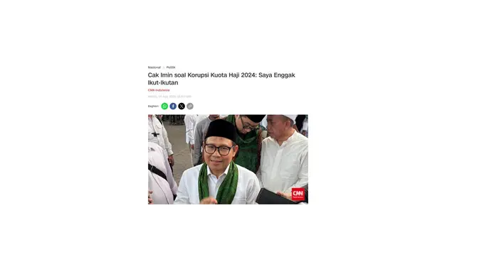 Namun dalam artikel asli berjudul "Cak Imin soal Korupsi Kuota Haji 2024: Saya Enggak Ikut-Ikutan".