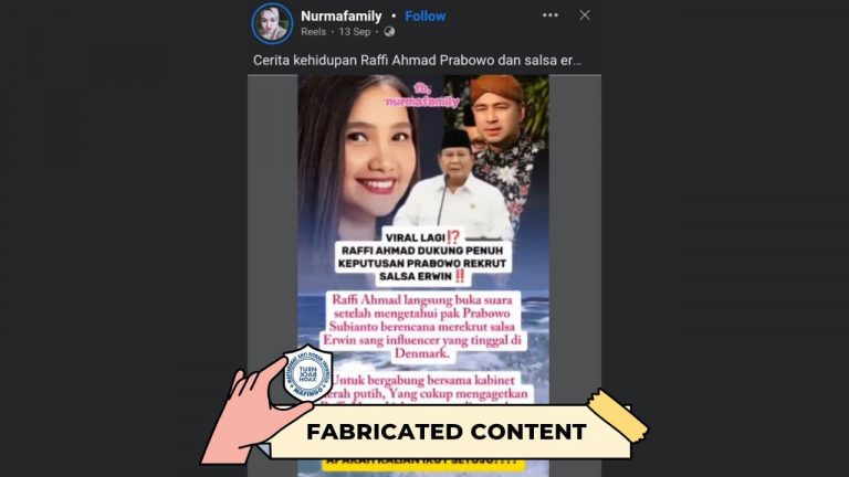 Unggahan video berisi klaim “Salsa Erwina gabung ke Kabinet Merah Putih” merupakan konten palsu (fabricated content).