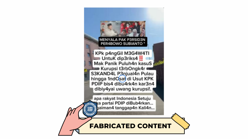 Unggahan dengan narasi “KPK panggil Megawati terkait puluhan kasus korupsi” merupakan konten palsu (fabricated content).