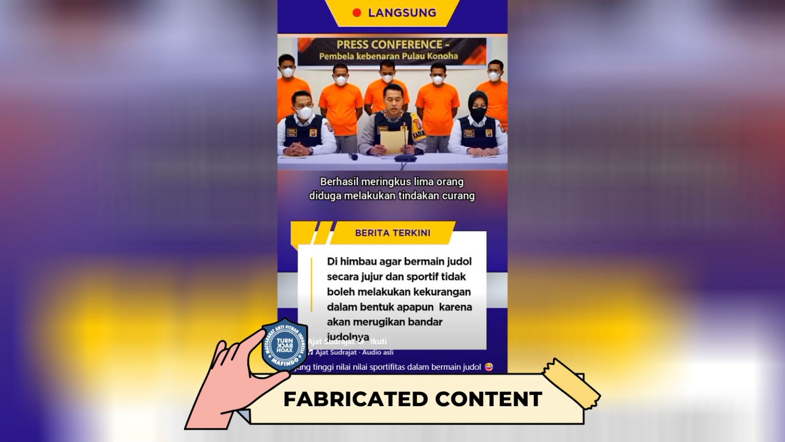 Unggahan berisi klaim “polisi imbau warga bermain judol dengan sportif tanpa merugikan bandar” adalah konten palsu (fabricated content).