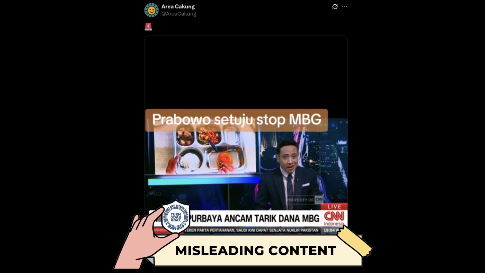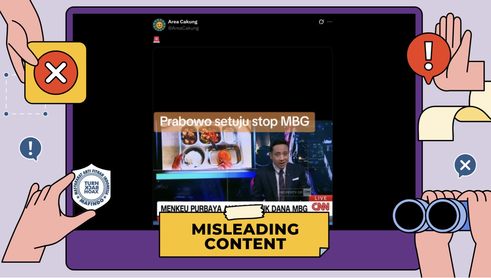 Unggahan berisi klaim “Prabowo setuju berhentikan program makan bergizi gratis (MBG)” adalah konten yang menyesatkan (misleading content)