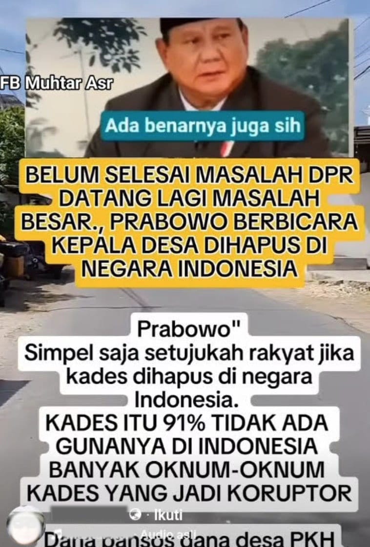 (GFD-2025-29229) Hoaks Prabowo Akan Hapus Jabatan Kepala Desa