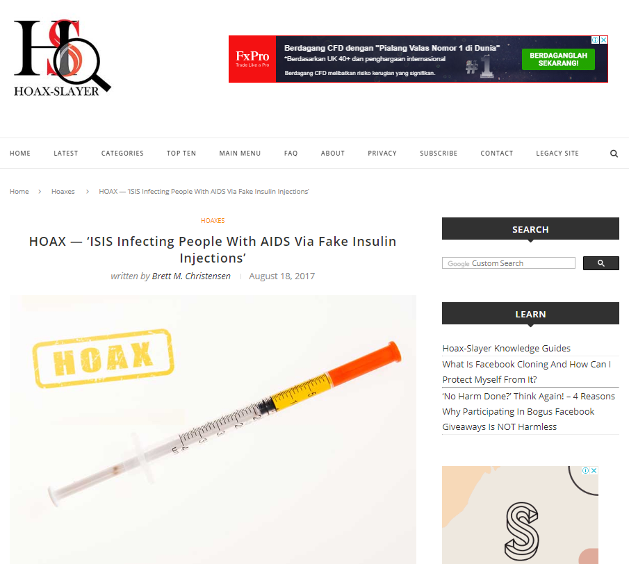 - https://www.hoaxorfact.com/crime/isis-injecting-aids-free-insulin.html