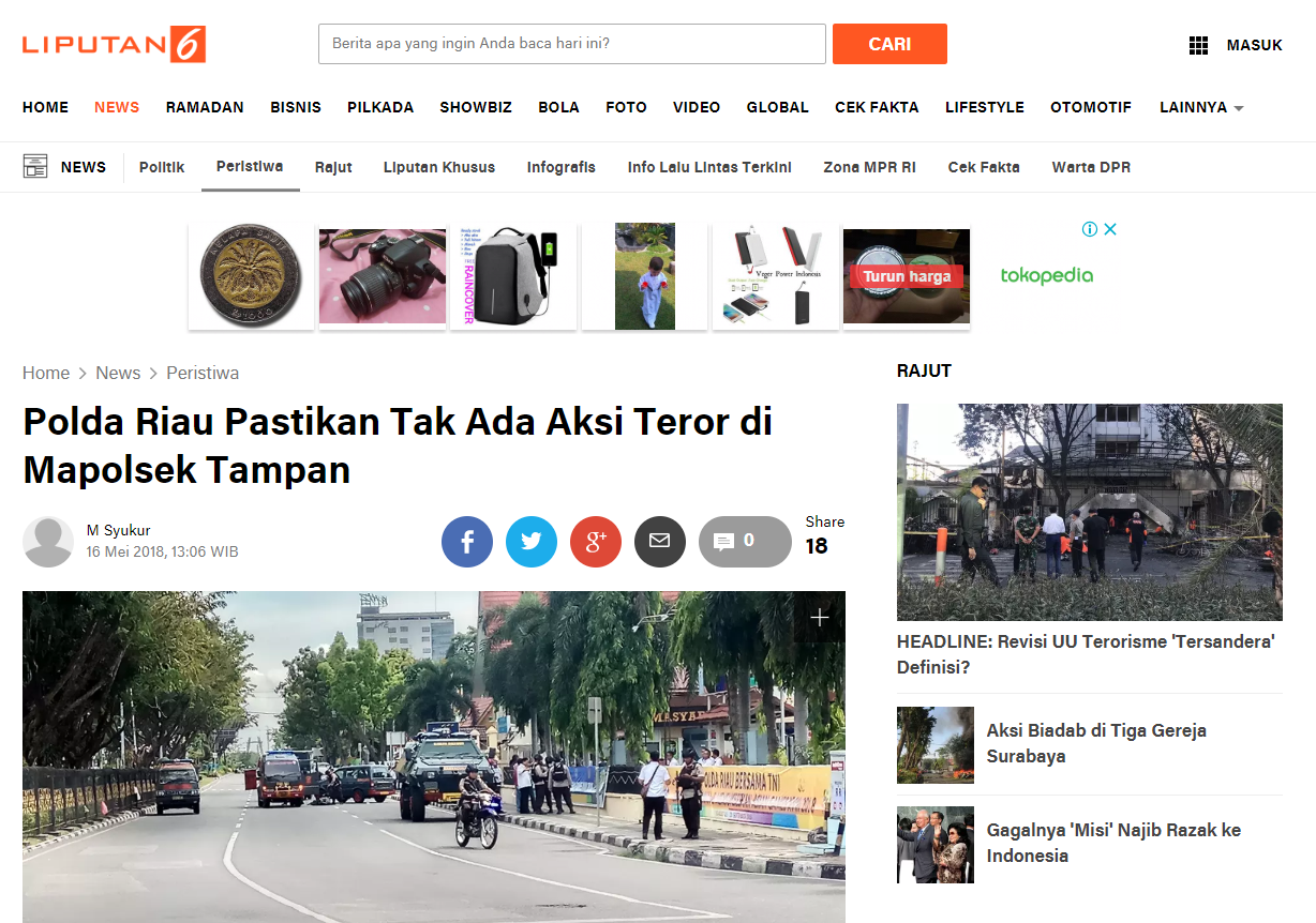 Sumber: tribunnews.comTanggal publish: 16/05/2018