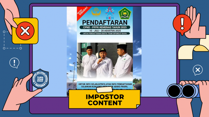 Unggahan berisi tautan “pendaftaran CPNS Kemenag 2025” yang mengarah ke laman tak resmi itu merupakan konten tiruan (impostor content) untuk modus penipuan.