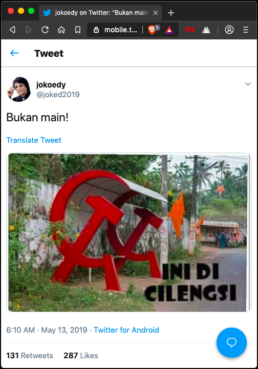 Sumber: twitter.comTanggal publish: 14/05/2019