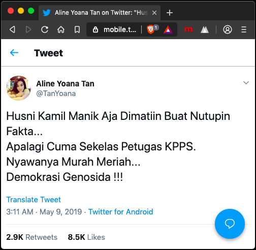 Sumber: twitter.comTanggal publish: 13/05/2019