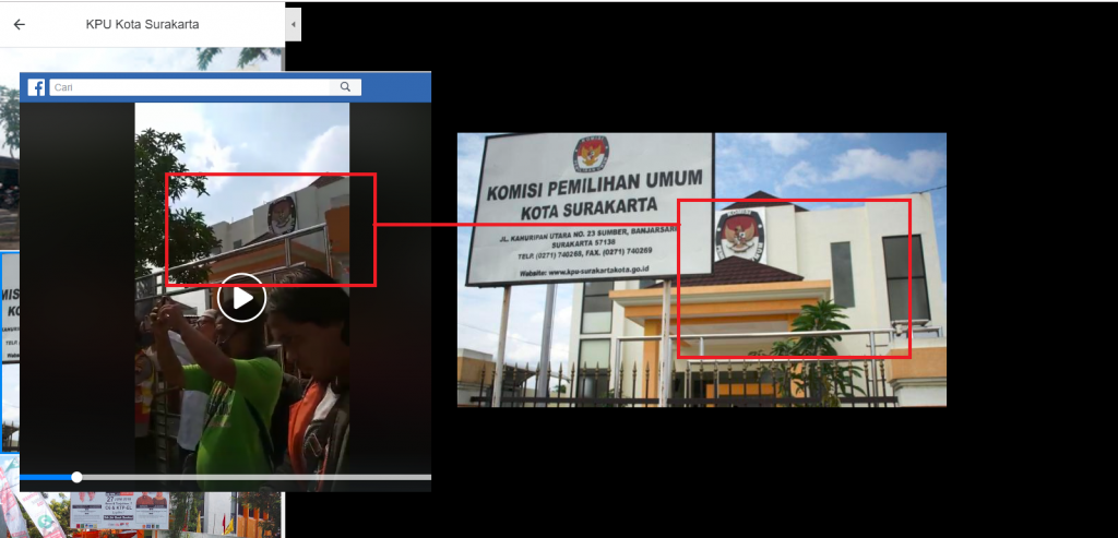 Fakta ini diperkuat setelah tangkapan layar dari video tersebut dibandingkan dengan foto yang dimuat di situs viva.co.id dan foto tampilan depan kantor KPU Surakarta yang dimuat di Goggle Maps.
