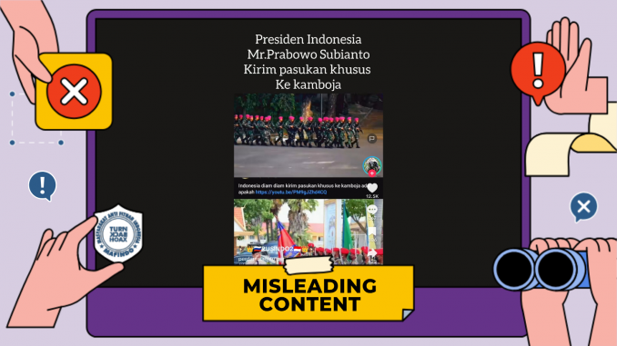 Unggahan video berisi klaim “Indonesia kirim pasukan khusus ke Kamboja” merupakan konten yang menyesatkan (misleading content).