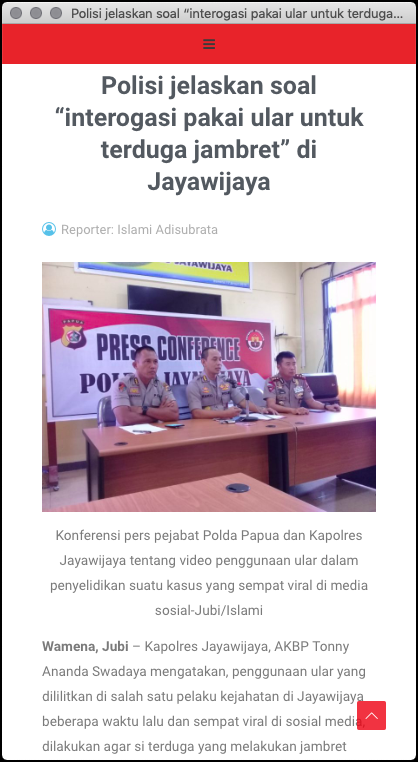 - https://www.jubi.co.id/polisi-jelaskan-soal-interogasi-pakai-ular-untuk-terduga-jambret-di-jayawijaya/