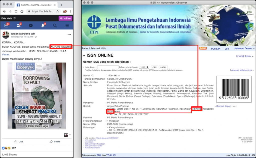 Disinformasi daur ulang, “Independent Observer” memang berbahasa Inggris tetapi BUKAN “Koran Inggris”. Pengelolanya adalah PT. Media Pandu Bangsa yang mendaftarkan ijin ISSN dengan alamat kontak di Cibinong (Bogor), selengkapnya di bagian PENJELASAN dan REFERENSI.