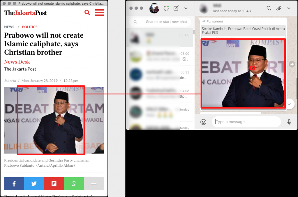 Berdasarkan penelusuran, video yang belakangan di posting di Facebook tampaknya telah disunting memakai aplikasi penyisipan suara bernama Madlipz, oleh akun media sosial bernama @DimasAshariPutra. Ini antara lain bisa dilihat lewat saluran YouTube Rahmat Hidayat yang diunggah Selasa (5/2/2019). Di situ bahkan tampak penanda bertuliskan @DimasAshariPutra dan tulisan aplikasi MadLipz pada bagian kanan bawah. Sementara dalam video yang diunggah akun Komando Pusat Relawan 12 PAS di Facebook, watermark MadLipz dan @DimasAshariPutra ditutupi tulisan "Pilihan Akal Sehat #02". Selengkapnya silakan cek referensi.