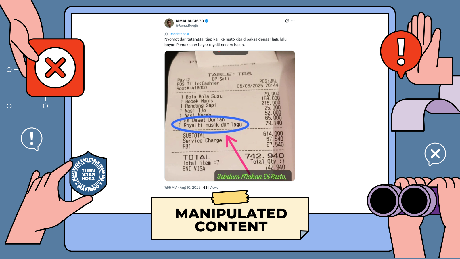Sepanjang Minggu (10/8/2025) hingga Jumat (15/8/2025) atau sekitar lima hari tersebar di Facebook, unggahan itu telah memperoleh 196 tanda suka, 25 komentar dan telah 12 kali dibagikan ulang.