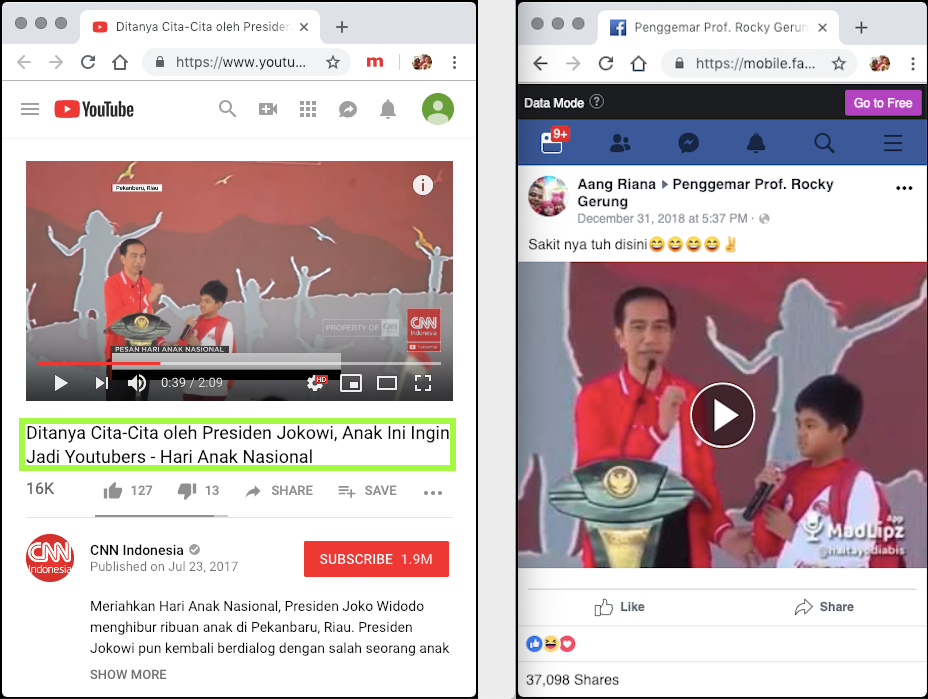 Berkaitan dengan pelaporan Anies Baswedan ke Bawaslu, muncul informasi di Facebook pada 8 Januari 2019. Akun Dank Firmansatria mengunggah foto Khofifah Indar Parawansa dan Ganjar Prabowo yang sedang mengacungkan satu jari, sesuai nomor urut pasangan calon presiden Jokowi-Ma’ruf Amin.