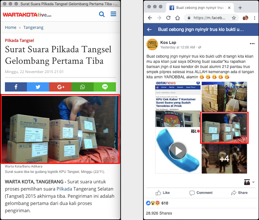 Selain menggunakan foto distribusi surat suara Pilkada Tangsel tahun 2015, isu yang disebarkan oleh post sumber sudah diperiksa oleh yang terkait yang hasilnya sudah terbukti hoaks. Selengkapnya di bagian PENJELASAN dan REFERENSI.