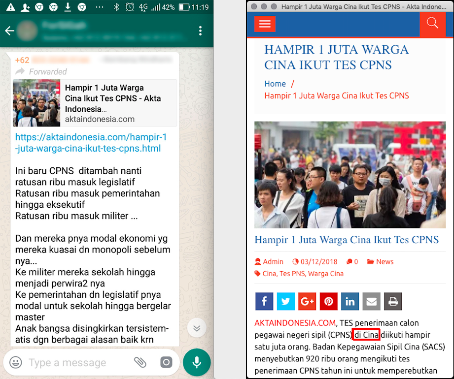Sumber: Media Pesan Whatsapp dan Media Sosial FacebookTanggal publish: 10/12/2018